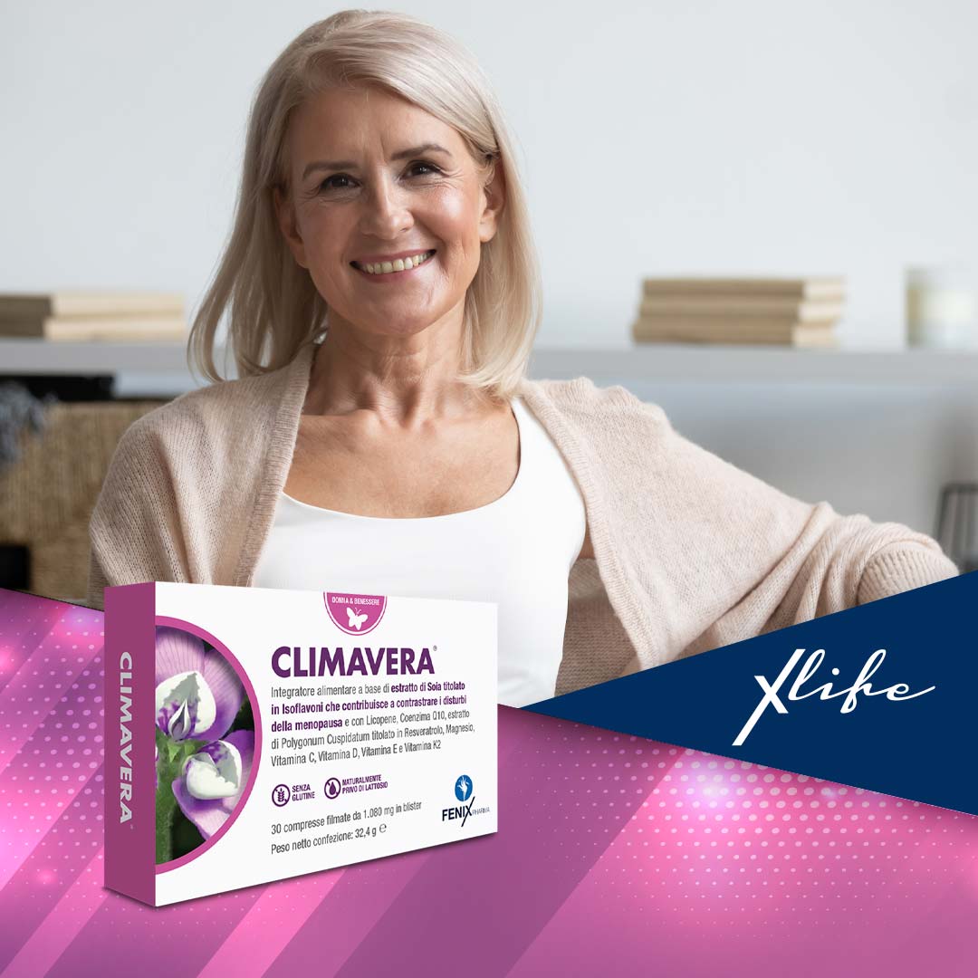 Climavera Integratore per il miglioramento dei sintomi legati alla postmenopausa (es. vampate di calore, irritabilità, insonnia, secchezza vaginale, perdita di massa ossea, ecc…)