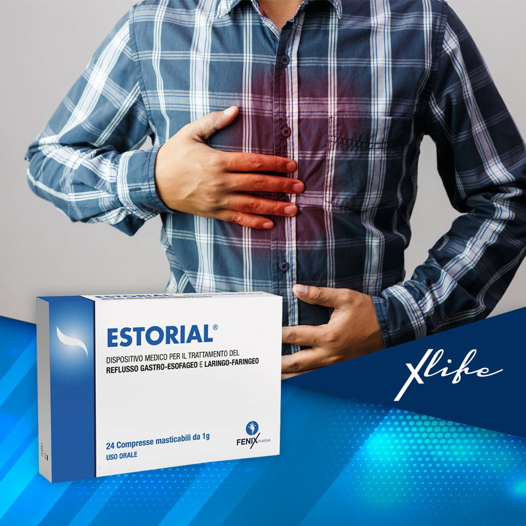 Riduce i sintomi delle patologie da reflusso contribuendo a controllare i disturbi legati al reflusso gastro-esofageo (pirosi, epigastralgia, rigurgito acido, dolore retrosterrnale). Limitando l’iperacidità gastrica, ostacolando il passaggio del contenuto acido dello stomaco verso l’esofago e preservando le mucose dall’irritazione acida Estorial può contribuire a proteggere la mucosa esofagea.