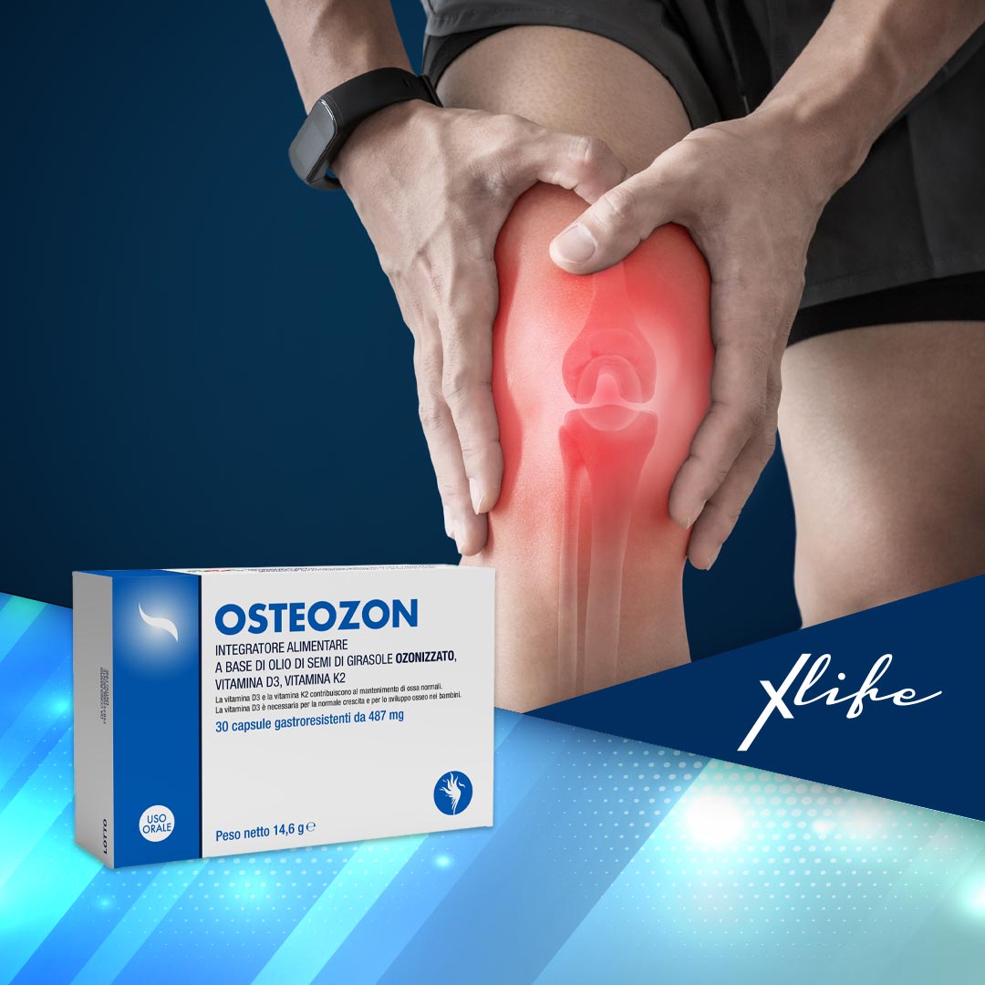 Osteozon 30 capsule è un integratore alimentare appositamente studiato per agire da coadiuvante nel trattamento degli stadi degenerativi e infiammatori di cartilagini, articolazioni, tendini e legamenti. Osteozon può agire anche da coadiuvante nella terapia infiltrativa con ozono. Osteozon 30 capsule è un integratore altamente innovativo, il primo a base di olio ozonizzato in capsule. Un integratore alimentare antiossidante coadiuvante degli stati infiammatori articolari e tendinopatie.